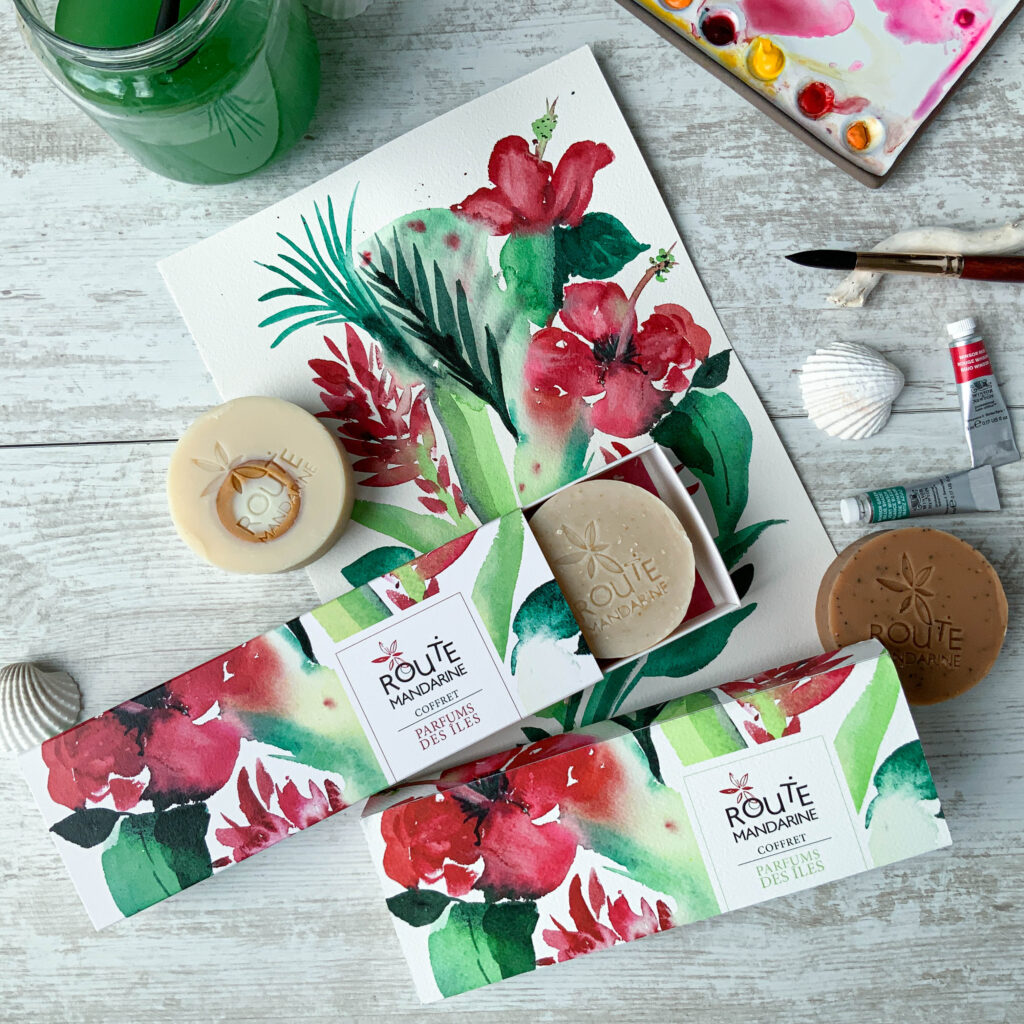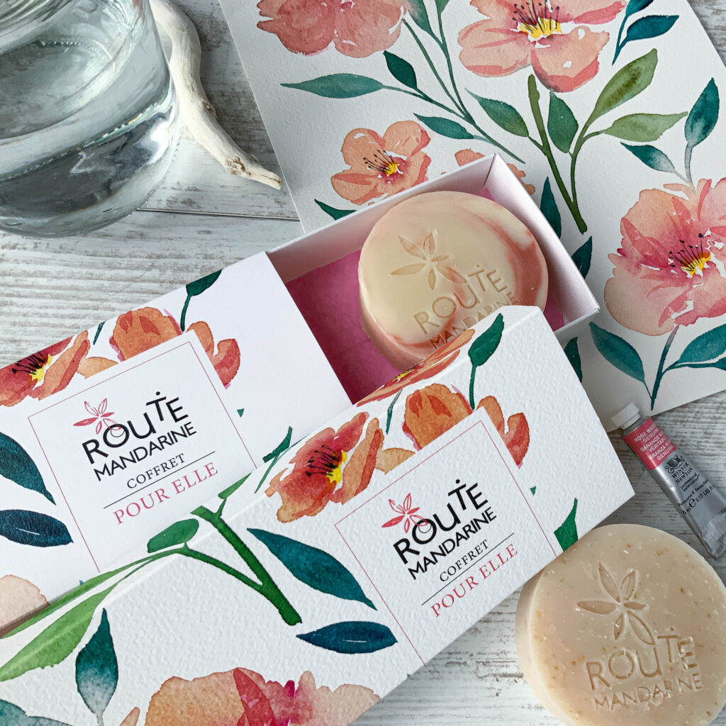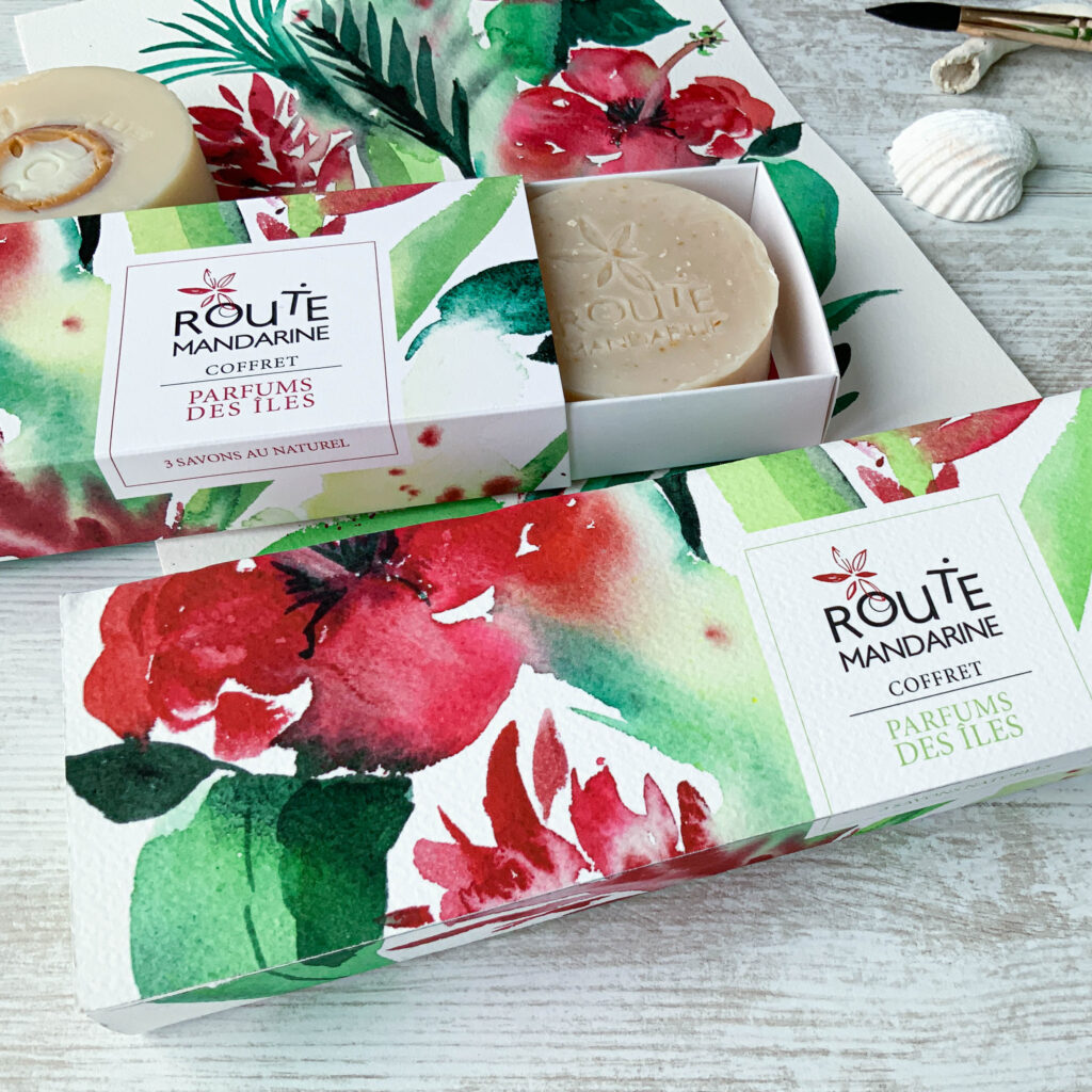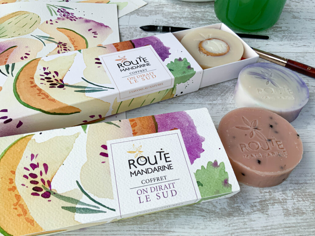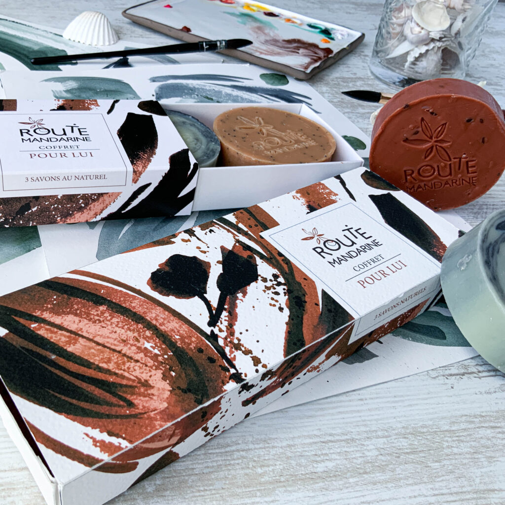NOUS AVONS CRÉÉ DES PACKAGING ORIGINAUX ET UNIQUES POUR CHAQUE COFFRETS CADEAUX DE LA SAVONNERIE ROUTE MANDARINE